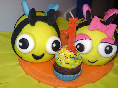 La base è in polistirolo, rivestita in pasta di zucchero. Il tema che ho deciso per la festa sono le api, così ho deciso di ispirarmi al cartone "la casa delle api".